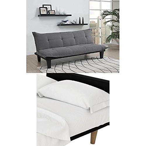 DHP Lodge Convertible Futon Couch Bed, Gray, and Futon Sheet Set, White